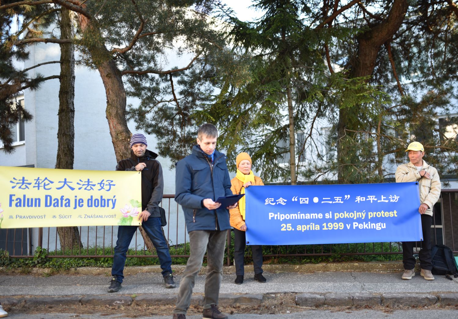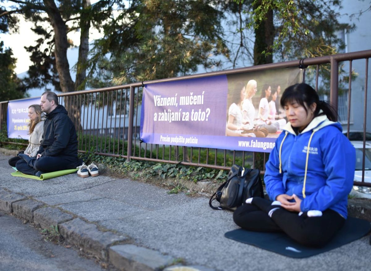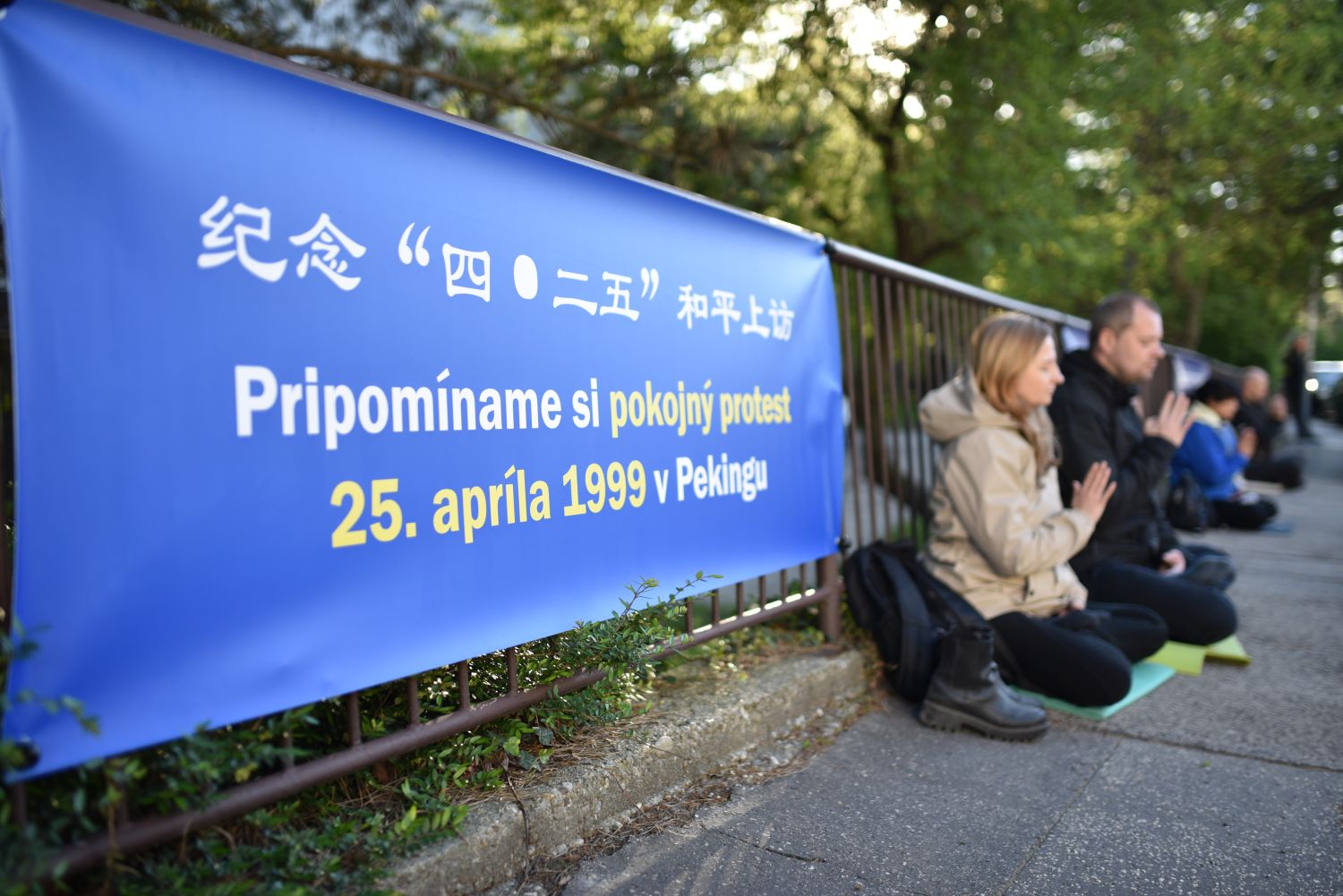 Pred čínskou ambasádou v Bratislave sa vo štvrtok 23. apríla popoludní zišli slovenskí praktizujúci Falun Gongu, aby si pokojným protestom pripomenuli apel z 25. apríla, ktorý s udial pred 27 rokmi v Pekingu.